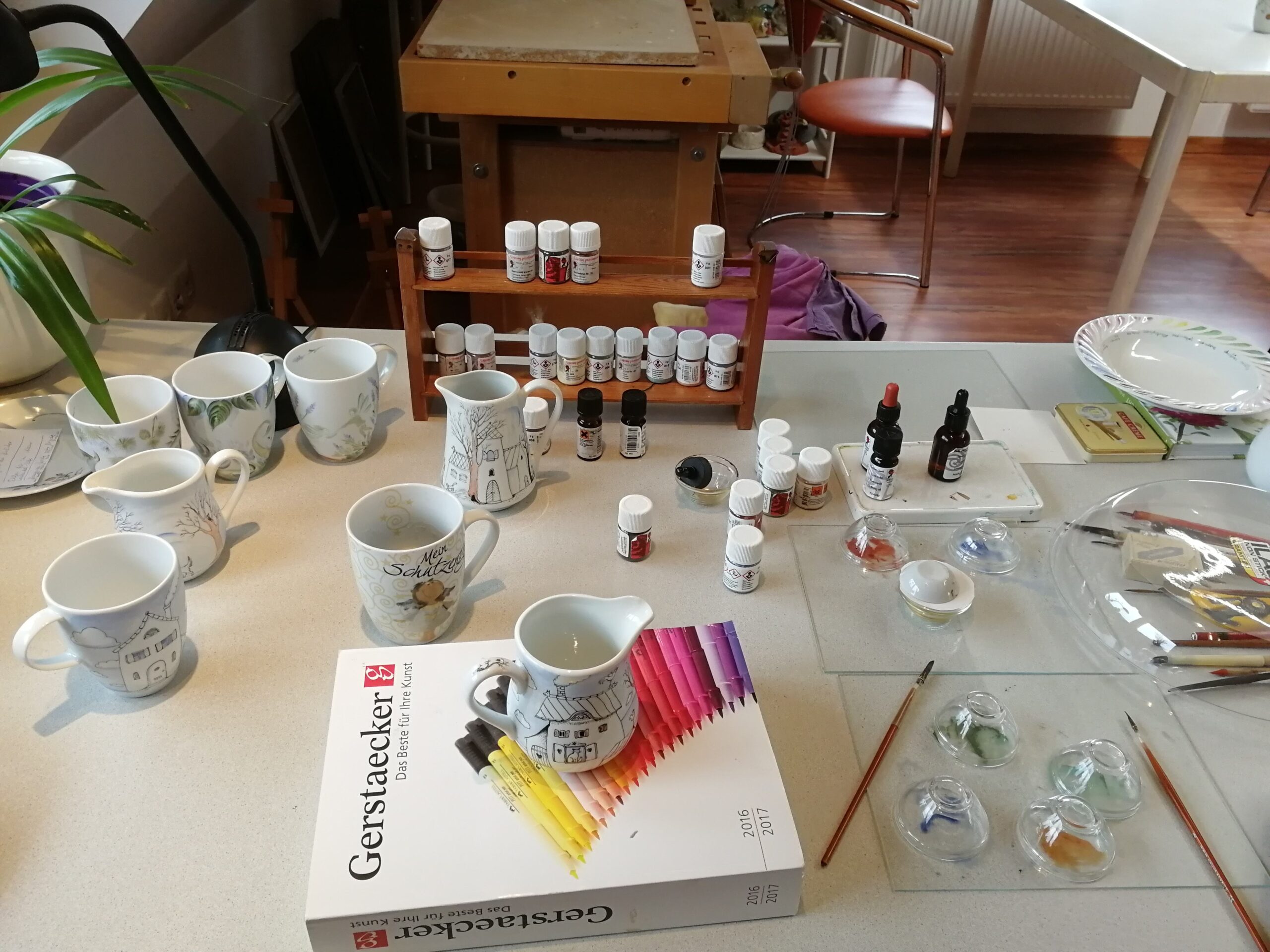 Eigene Arbeiten Impressionen Eigene Arbeiten Zeichnungen, Buchillustrationen, handbemaltes Porzellan, Keramik